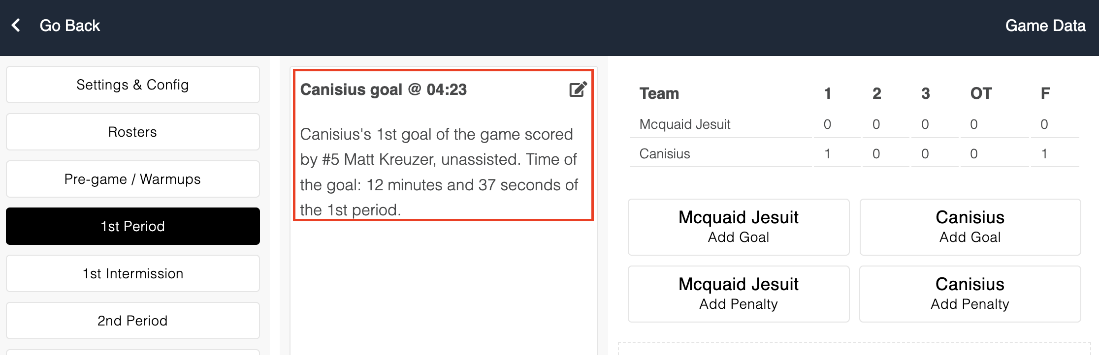 This will update the boxscore in the period tab and tweak the goal announcement script as necessary.
