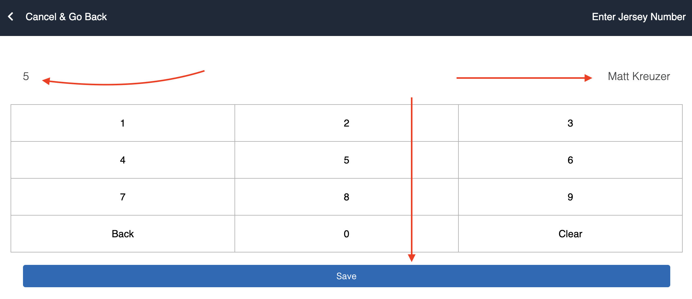 Punch in the jersey number of the player; if it matches a player on the roster you will see their name appear.