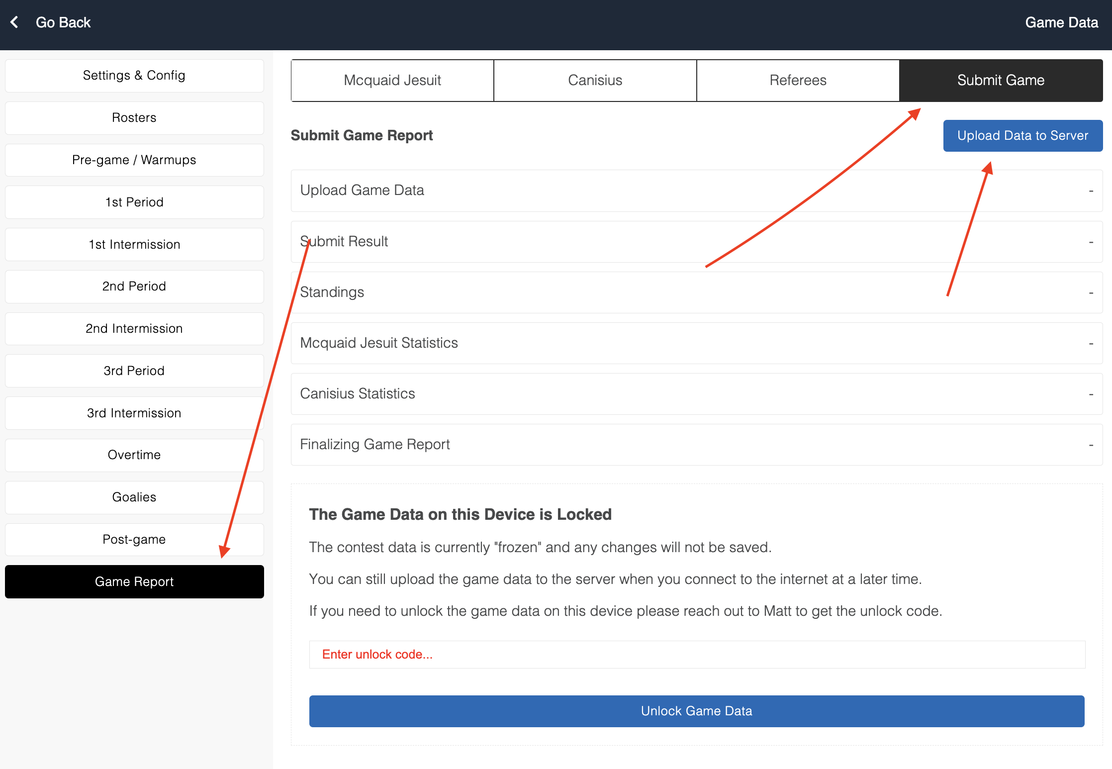 At any other rink, submitting the game report data is the sole responsibility of the team who supplied the iPad.